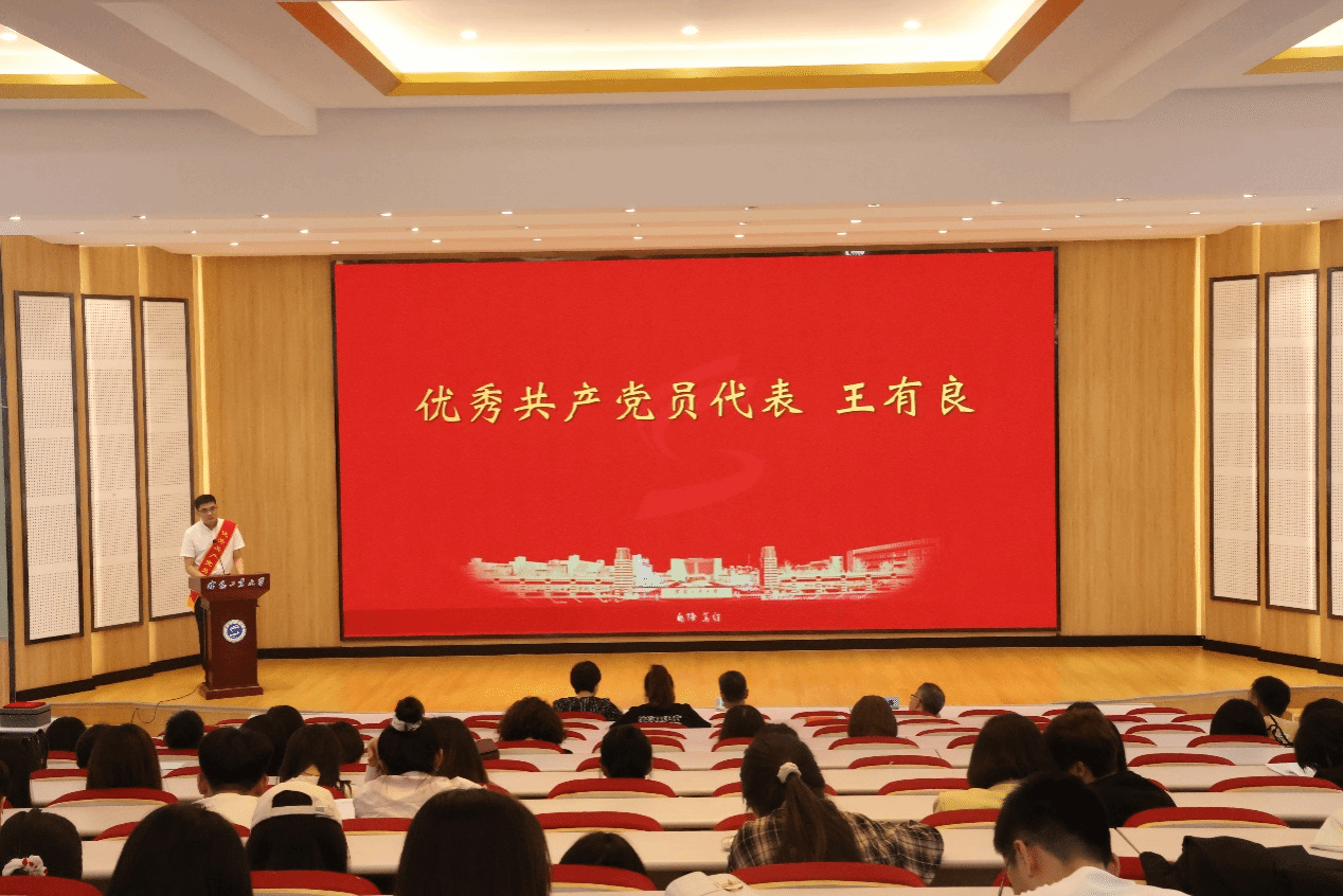 颁奖结束后,受表彰的先进代表杨乃坤、李晗、王有良、邴程程先后上台发言,四位同志分别从优秀共产党员标兵、优秀党务工作者、优秀共产党员、先进党支部等角度做了经验交流。