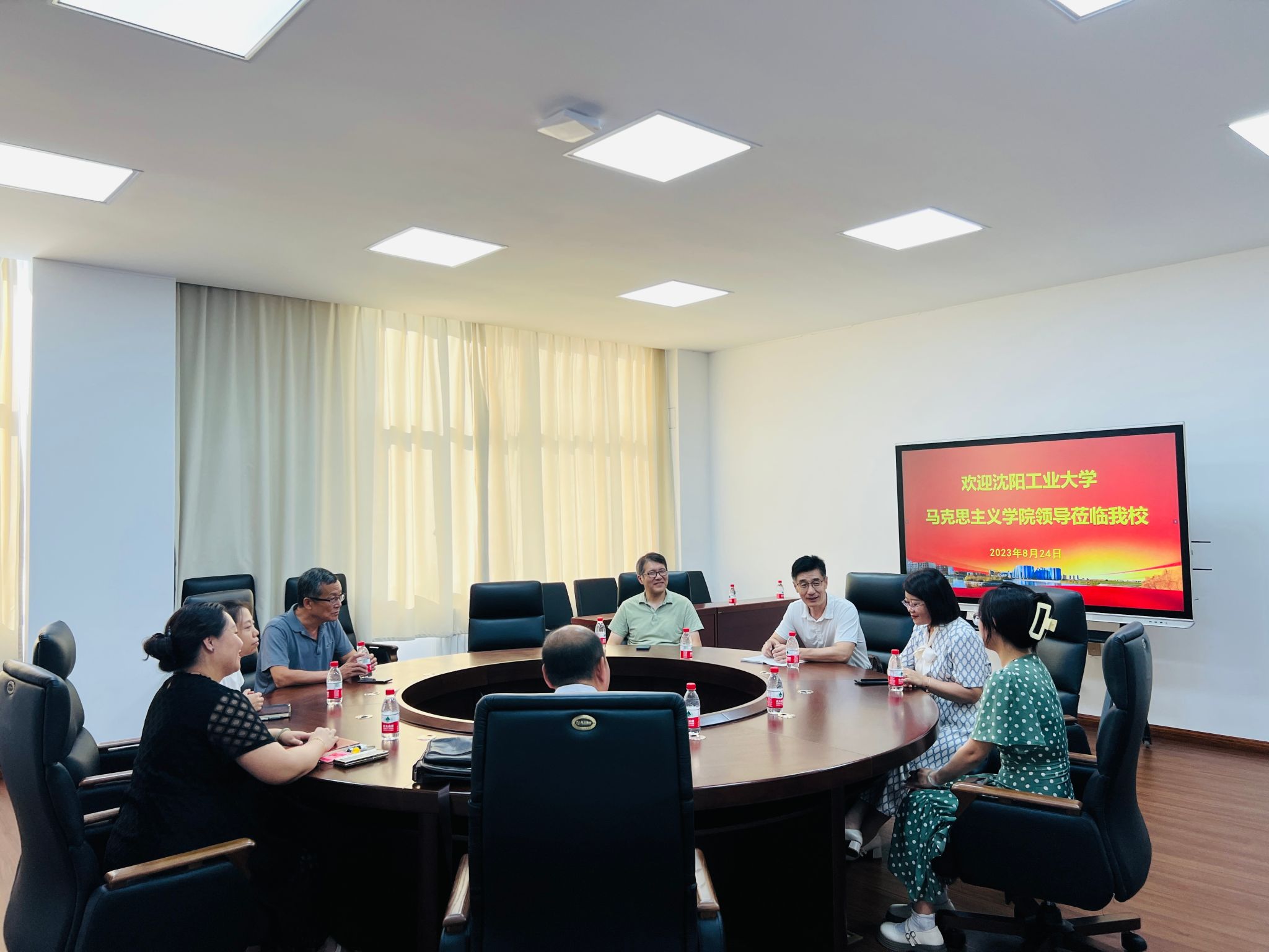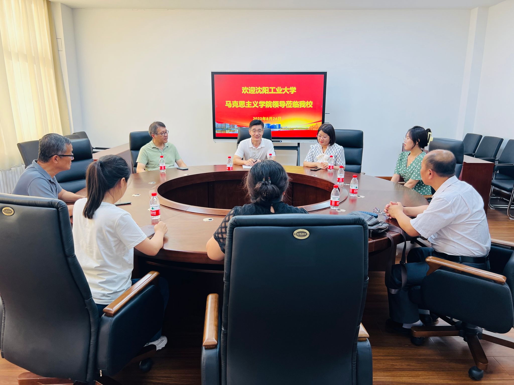 2023年8月24日下午,永利23411集团党总支书记曲弋、院长韩影、副院长贾德辉及教师徐晶一同赴沈阳科技学院开展了一次访企拓岗调研活动。沈阳科技学院永利23411集团院长刘芳热情接待了永利23411集团的各位领导老师,并携学院领导班子、教学名师及各教研室主任参加了两校马院的交流座谈会。