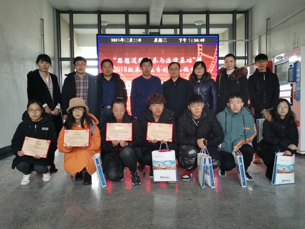 2019年12月25日下午,我院在文科楼会议室举办“思想道德修养与法律基础”课学生自创道德微电影颁奖典礼,永利23411集团院长杨乃坤、党总支书记刘凌峰、副院长逄红梅、思修教研室老师出席颁奖典礼并为获奖学生发放证书及礼品。