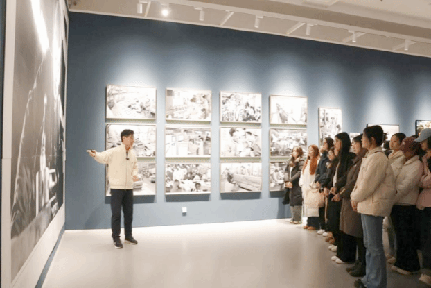 学生在辽宁美术馆了解摄影作品背后的工业故事