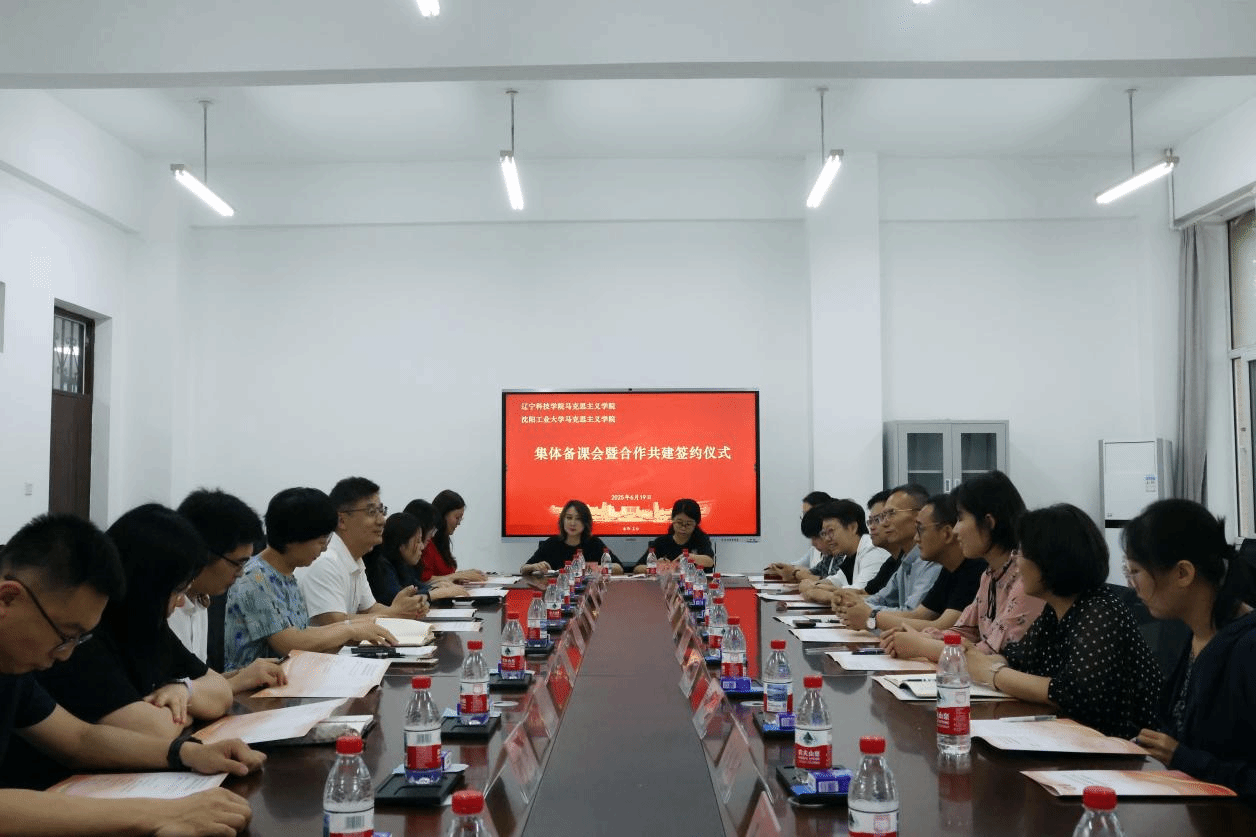 我院党总支书记曲弋、院长韩影与辽宁科技学院永利23411集团院长贾楠分别致辞。曲弋首先介绍了永利23411集团党总支建设情况及经验,接下来,韩影和贾楠对本学院办学历史、师资规模、思政课建设特色、育人成效等情况做了基本介绍。情况介绍后,集体备课会随即展开。两院教师围绕思想政治理论课教学进行了深入研讨,教师们结合工作实际,就教学目标设定、教学内容打磨、教学手段创新、教学案例实施等方面交流了意见,此次备课会为两院教师今后的教学实践拓宽了视野,积累了经验。随后,韩影和贾楠在双方教师的见证下,共同签署了合作共建协议。根据协议,两院将在构建一体化工作体系、建立协同机制、红色资源研究与转化、实施“六个一”工程等方面展开密切合作。