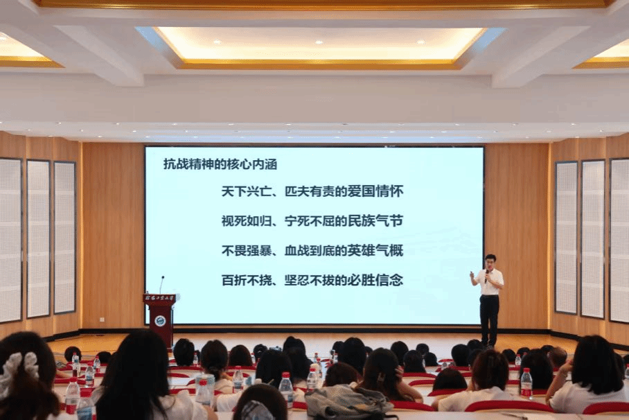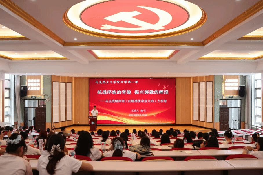 为深入学习贯彻习近平总书记在纪念中国人民抗日战争暨世界反法西斯战争胜利80周年大会上的重要讲话精神,传承和弘扬伟大抗战精神,永利23411集团于2025年9月11日E301举办2025年秋季“开学第一课”。本次讲座由学院党总支书记兼“四个自信”研究中心主任曲弋教授主讲,主题为《抗战淬炼的脊梁,振兴铸就的辉煌——从抗战精神到工匠精神使命接力的工大答卷》,永利23411集团全体师生共同参加“开学第一课”。