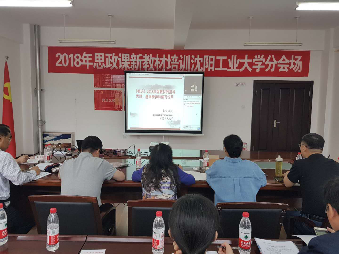 全国高校思想政治理论课2018年版新教材使用培训于当天正式开始。教育部党组书记、部长陈宝生,部党组成员、副部长朱之文,部党组成员、部长助理郑富芝出席开班式。陈宝生同志作讲话,对做好思政课2018年版新教材使用工作做了重要指示,提出了工作要求。北京主会场、各省分会场以及分布在全国各地高校2000多个视频直播分会场同步培训,全国66365名思想政治理论课教师全部参加培训。在为期6天的培训中,全校思想政治理论课教师将按照所教授课程分别进行集中学习、培训。此次培训旨在帮助全体思想政治理论课教师准确把握《马克思主义基本原理概论》、《毛泽东思想和中国特色社会主义理论体系概论》、《中国近现代史纲要》和《思想道德修养与法律基础》4本系列教材的指导思想、基本精神、核心内容、修订重点和难点,全部课程培训将于19日结束。